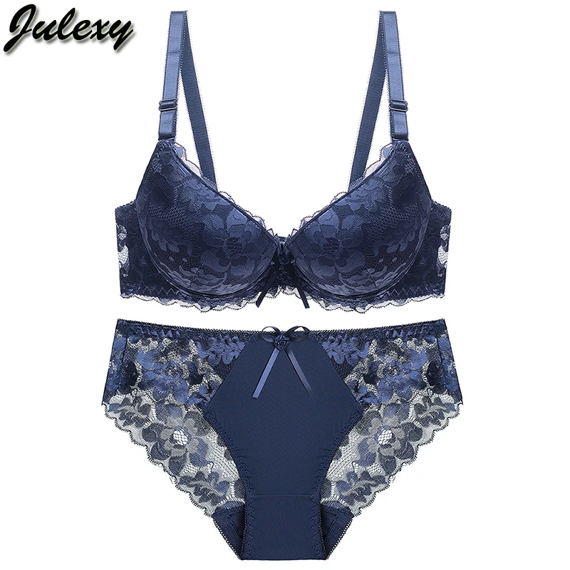 Julexy luxurious Embroidery BCD Large Cup Plus Size Women Bra Set 36 38 40 42 Push Up Lace Bra Brief Sets Intimate Underwear set