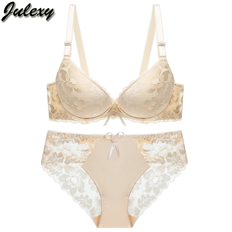 Julexy AB Cup Seamless Women Bra Set One Piece Lace Push Up Brassiese Panty Sets Adjustable Bralette Underwear set