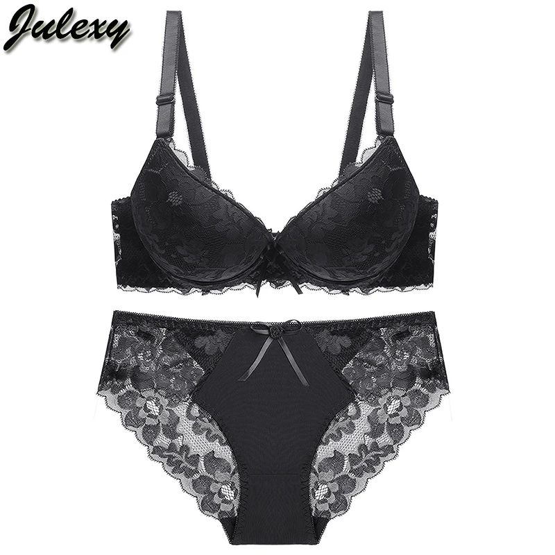 Julexy New 2018 C Cup Sexy Women Bra Set Red Black White Intimate Lace Bra Brief Set Push Up Underwear and panty set